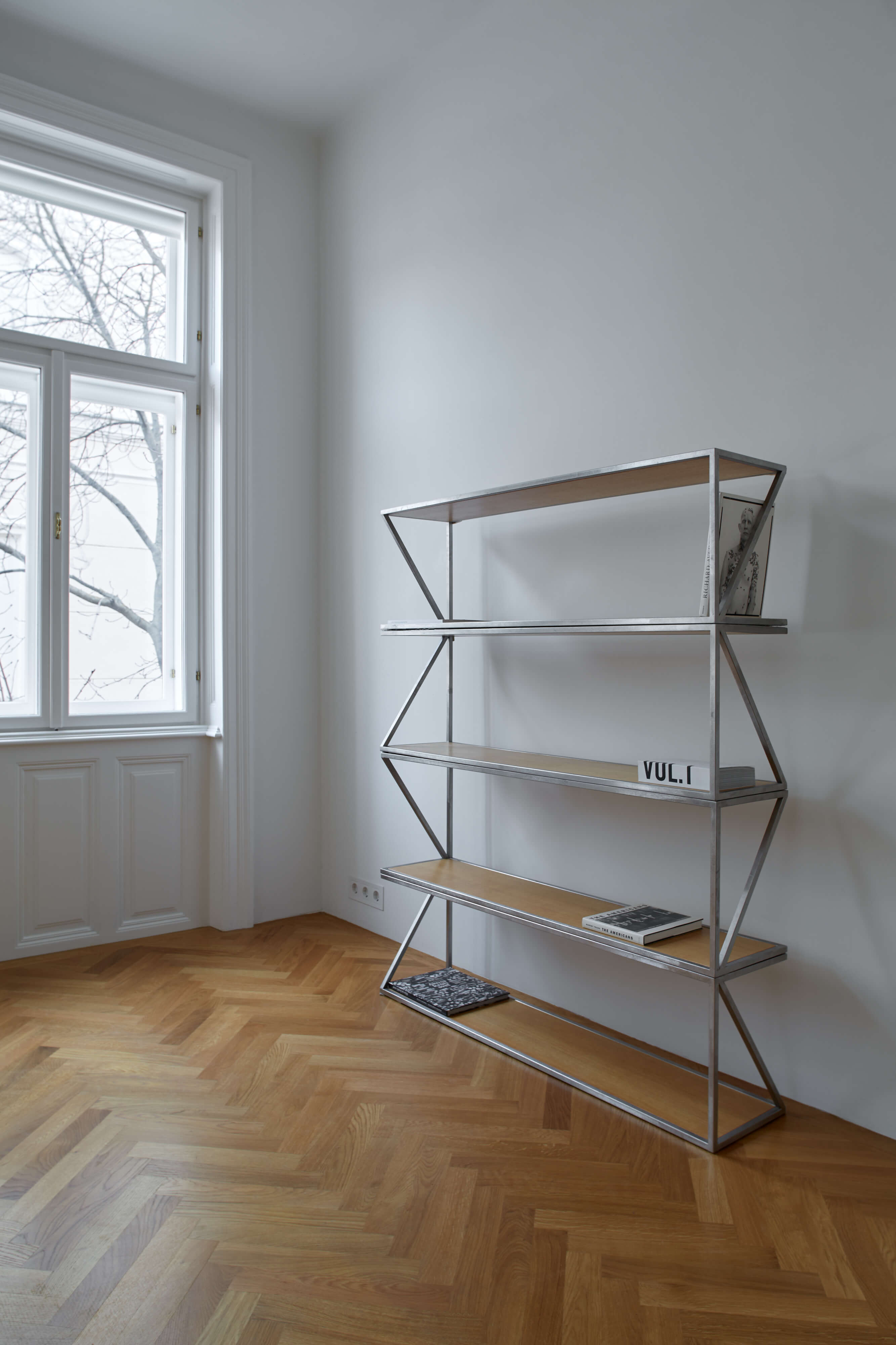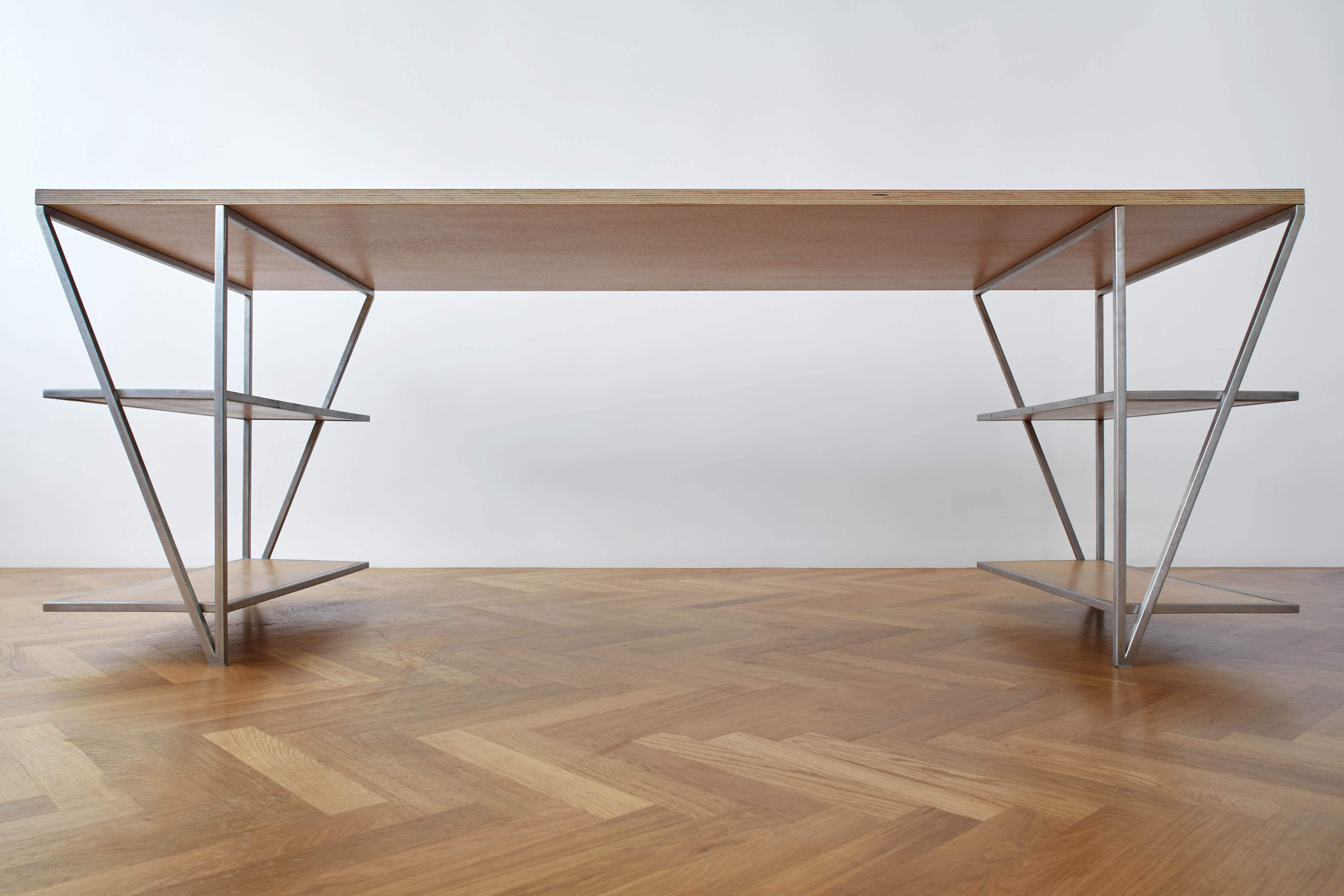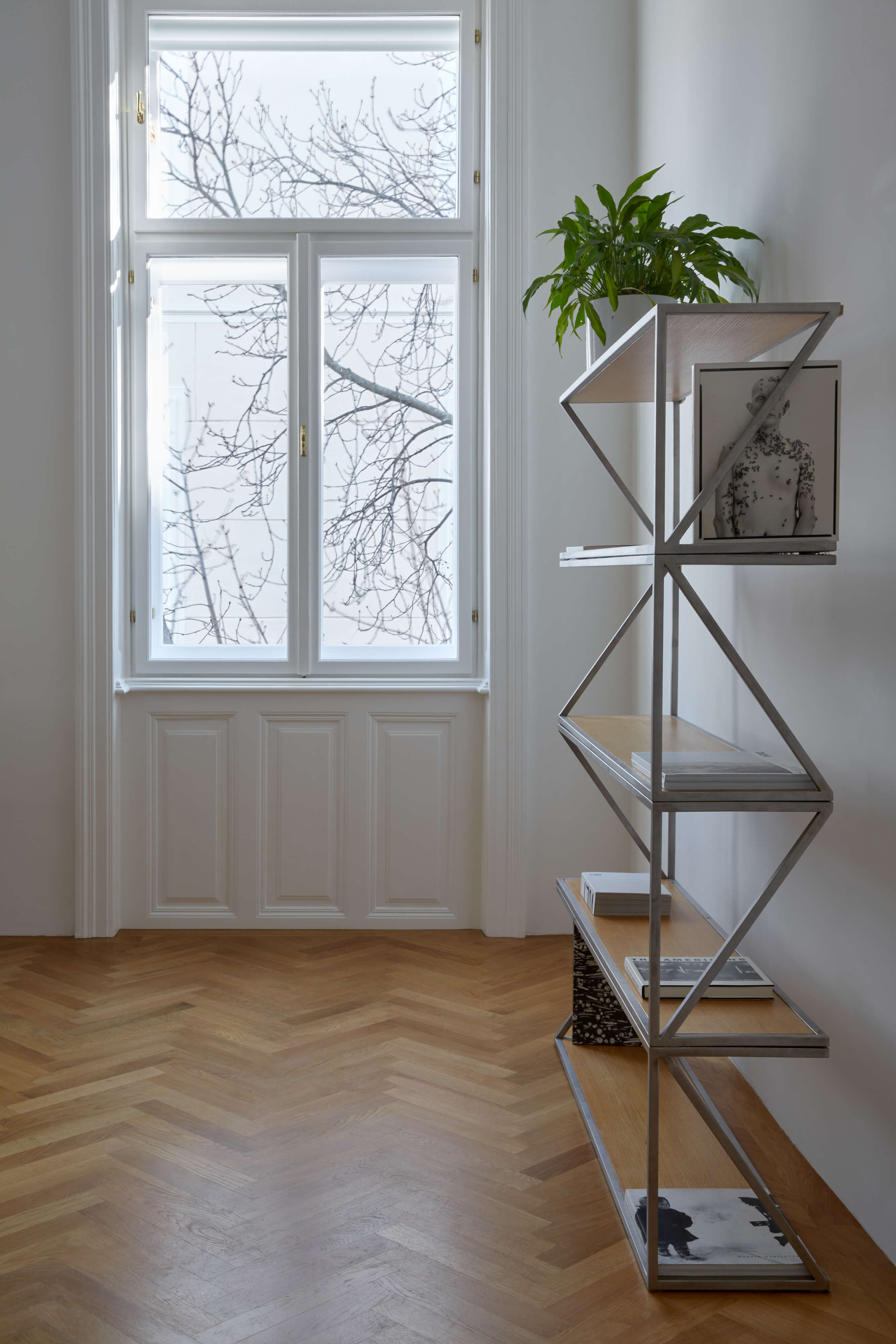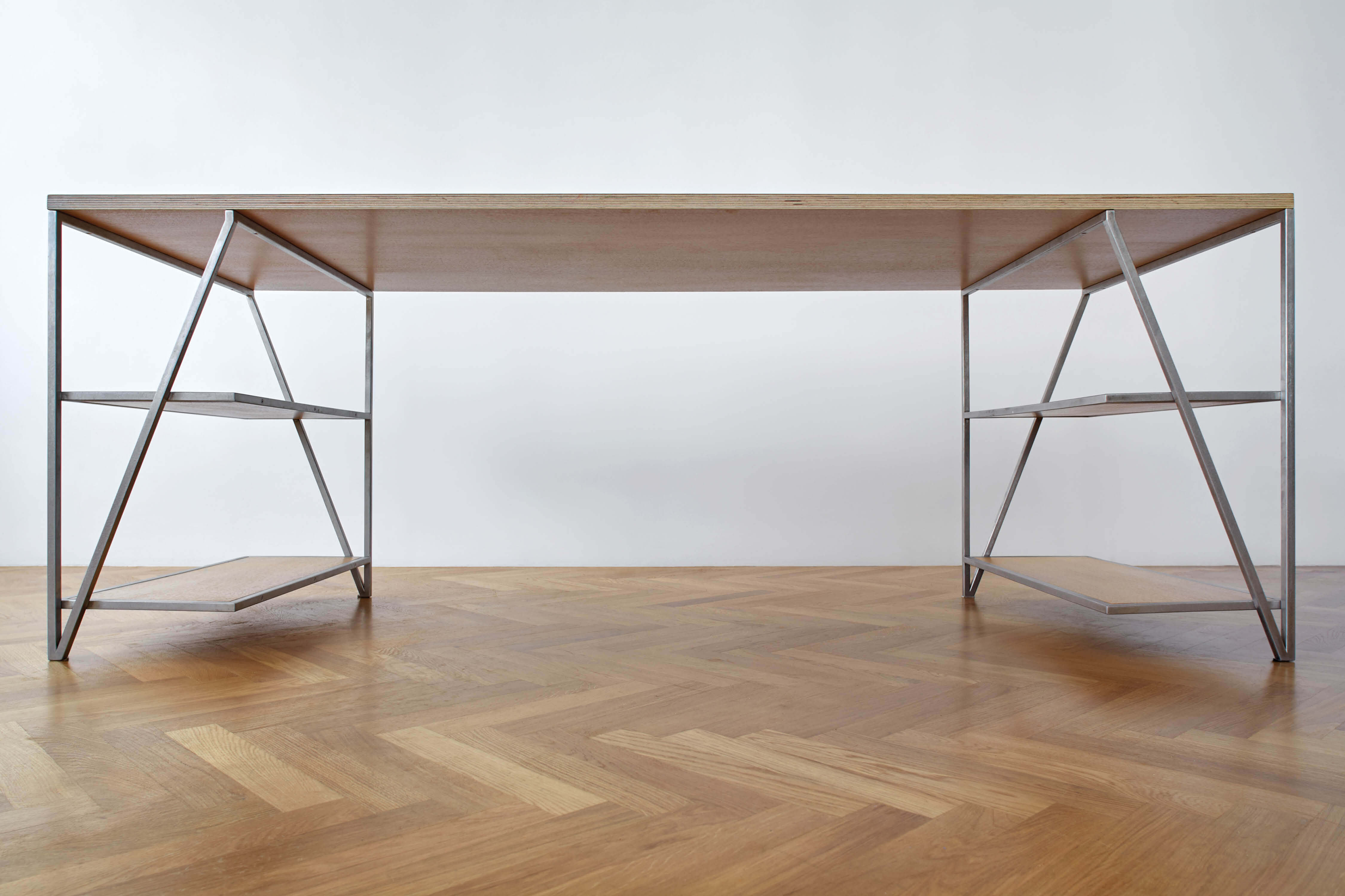 The table the shelf designed to be used as a workstation reflects the pragmatic approach of Proksa Architects. Using materials like wood and steel in a way that emphasises on their natural properties is celebrating a direct and an honest way of constructing furniture.
