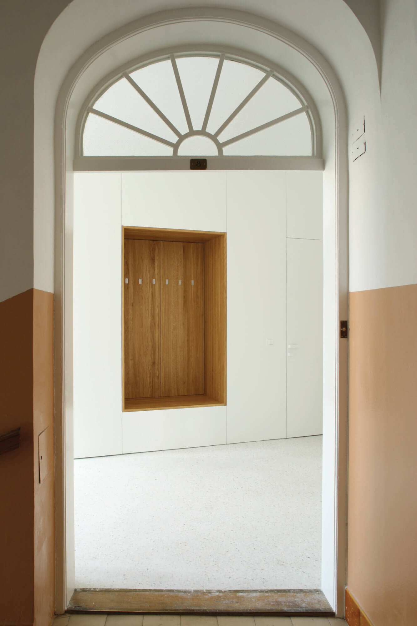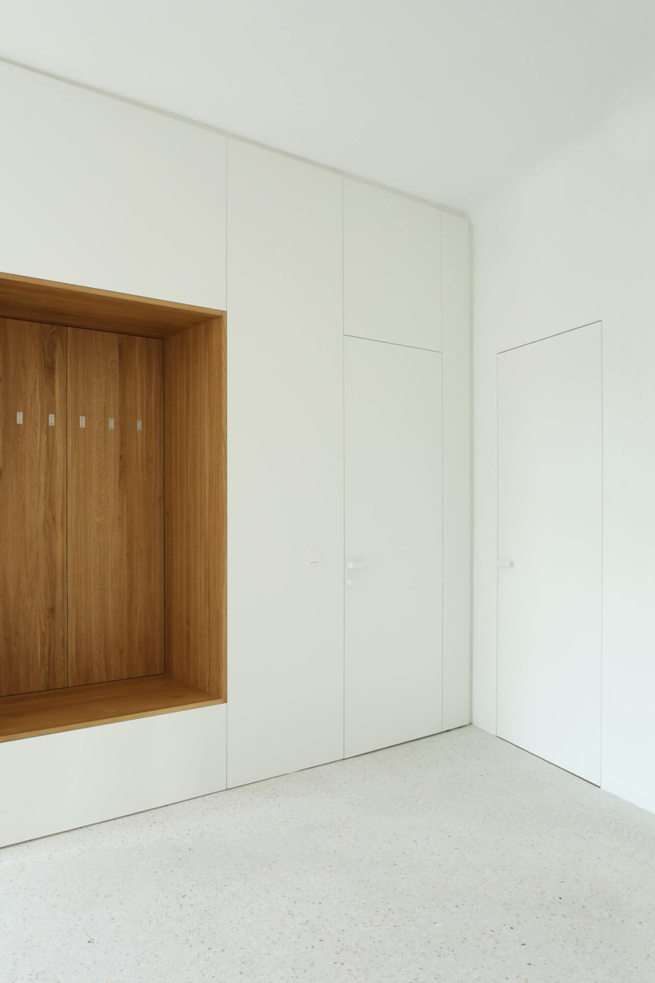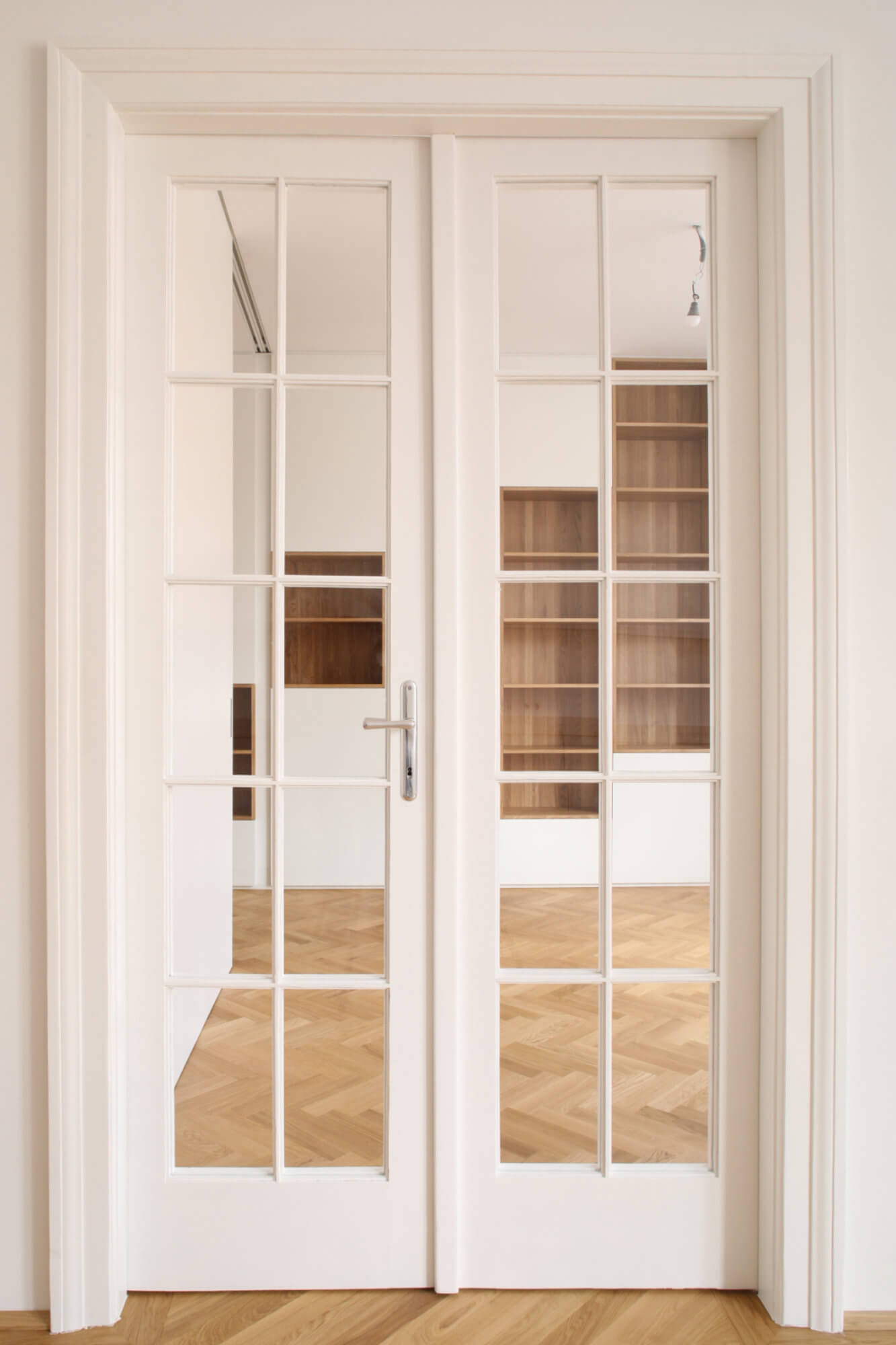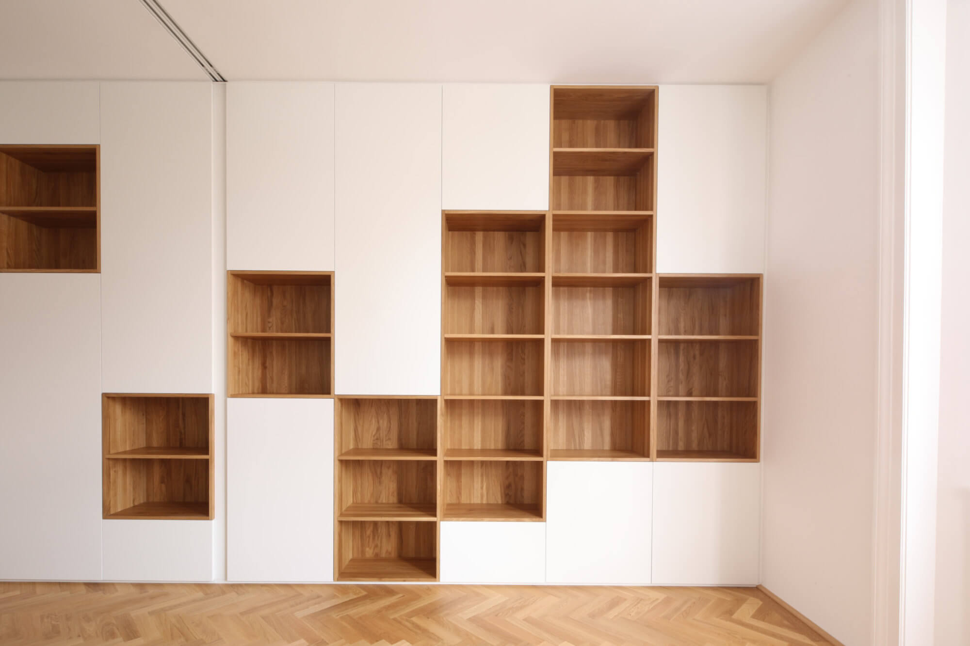 Building within the existing fabric. The renovation of a flat in the Art Nouveau house in the 4th district of Vienna is one that plays with contemporary design elements to remodel the flat. The wooden accents are well adjusted to the white elements and accentuate the form of the flat together.